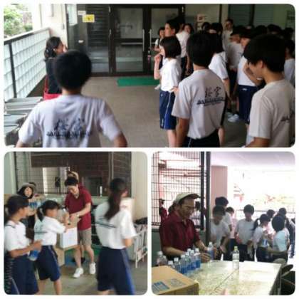 体育館前に集合し、PTA からお礼の挨拶、次回の連絡の後、参加者全員にスポーツドリンクが配られました。