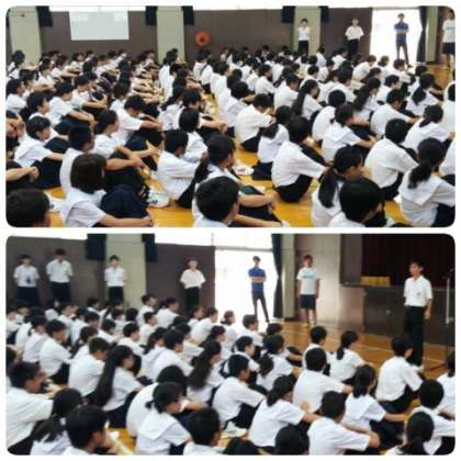 学校長の話に続いて、生徒指導主事の丸岡先生から、警察から注意喚起のあった危険な遊びについて話がありました。来週の水曜日から期末懇談会が始まり、21日からは夏休みです。子どもたちは、家庭や地域で過ごす時間が多くなります。事故や事件に巻き込まれないよう、安全面にも十分に留意して過ごしてほしいと思います。