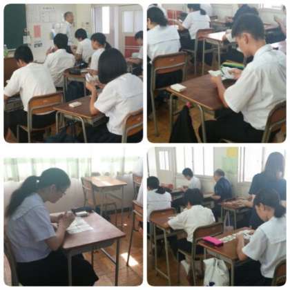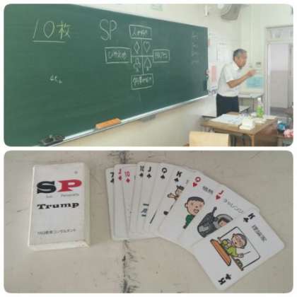 7月13日(金)2〜4時間目、2年生の進路学習で招いたヒューマンキャンパス高等学校大阪学習センターの川島浩先生に来ていただき、3年生を対象としたSP(サブ・パーソナリティー)トランプを活用した進路学習を各教室で行いました。