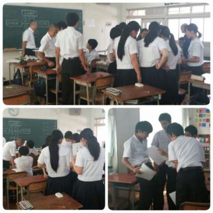 転記ができた時点で公表タイムです。先生方も参加して、選んだカードをお互いに確認しあっていました。