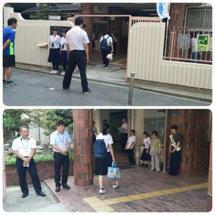 7月17日(火)朝の登校時、更生保護女性会、本校PTA、学校元気アップの皆さん、教職員、生徒会役員、風紀委員も加わり、みんなで「あいさつ運動」に取り組みました。