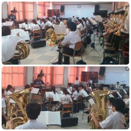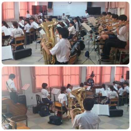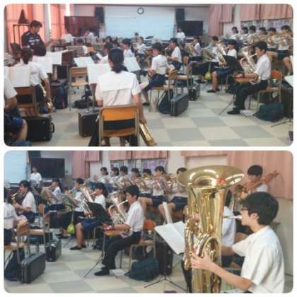 8月2日(木)午後、吹奏楽部が東都島地域「第31回ふれあいフェスティバル」に向け、音楽室で全体練習に取り組んでいました。