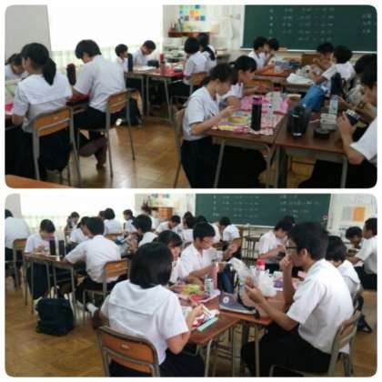 3年生は、昨日から続くテストに、ほっと一息いれながら、お昼のお弁当を楽しんでいたようです。昼食後は、チャレンジテストの英語、6時間目に実力テストの数学です。