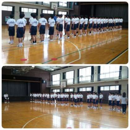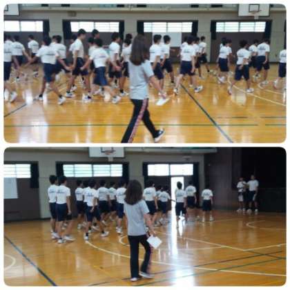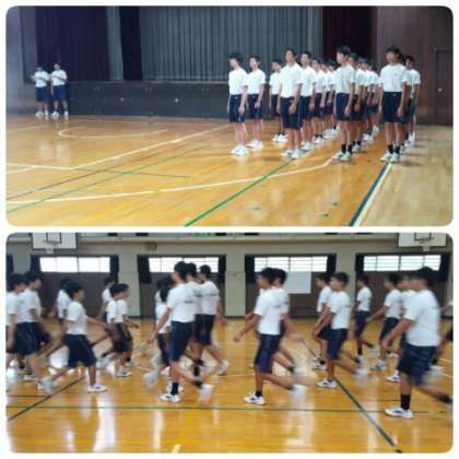 3年生は体育大会に向けて、今週から3クラス合併で保健体育の授業に取り組んでいます。昨日は男子が水泳最後の授業で女子が集団行動、今日は入れ替えで女子が水泳最後の授業で男子が集団行動です。今後は男女ともで集団行動に取り組んでいきます。