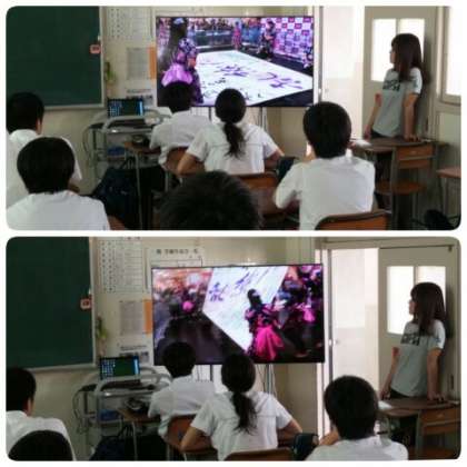 今年度の3年学年発表は、書道パフォーマンス・黒板アート・よさこい踊りの3つです。