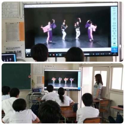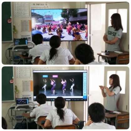 最後に、修学旅行でお世話になった高知県大豊町から送っていただいた、よさこい踊りの練習用DVDを観ました。発表では「正調よさこい鳴子踊り」「鳴子華」を踊る予定です。文化祭が近づきましたら、大豊町のご好意で、直接ご指導いただける機会も設けていただける予定です。