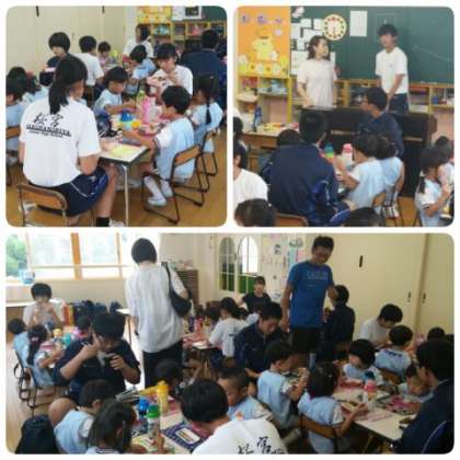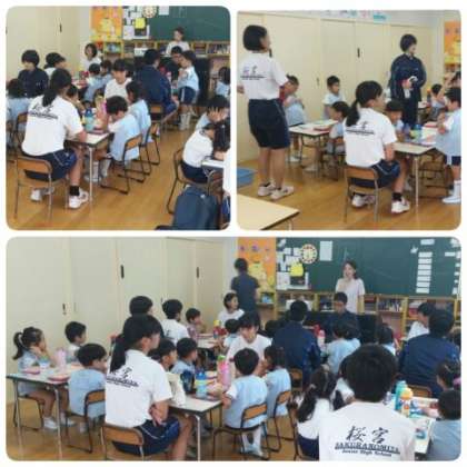 雨で、運動場での練習や外遊びはできませんでしたが、屋内でしっかりと練習する姿に中学生も刺激を受けたのではないでしょうか。