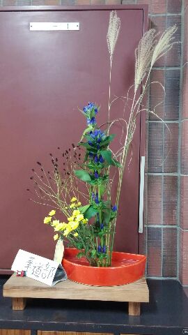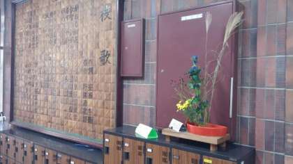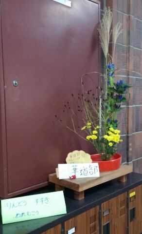 茶華道部の子どもたちが、りんどう、すすき、われむこうを使って「いけばな」の作品づくりに取り組み、玄関に飾ってくれています。