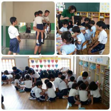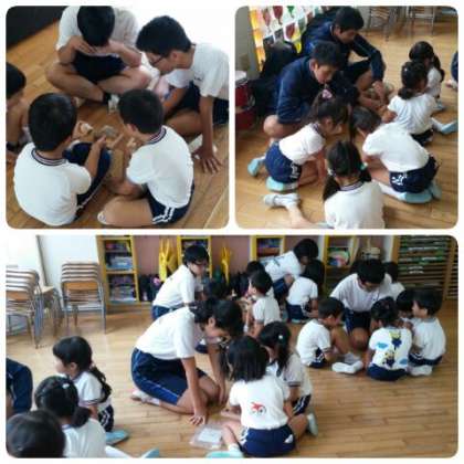 ダンスを一緒に踊ったり、自分たちで作って持って行った木のパズルやお絵かきなど、園児さんたちと遊んだりする中で、気分も和んできました。