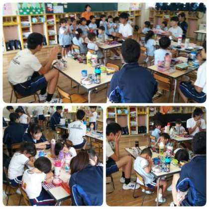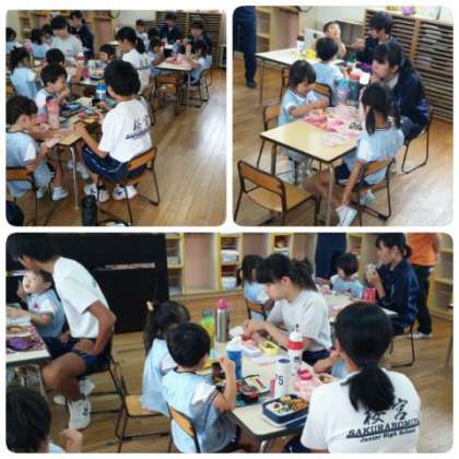 今日は園児さんたちも家から用意したお弁当の日、お互いに、笑顔いっぱいのお弁当タイムとなりました。