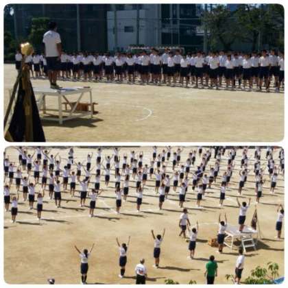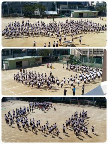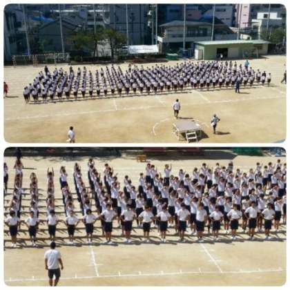 9月19日(水)5時間目、運動場において体育大会全体練習を行いました。