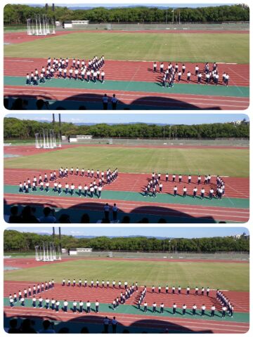 今年の集団行動の締めくくりは四角から隣の列への移動です。
