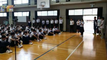 始めに、平成30年度前期生徒会執行部役員の一人ひとりから、半年間取り組んできた生徒会活動についての成果や感想について話がありました。