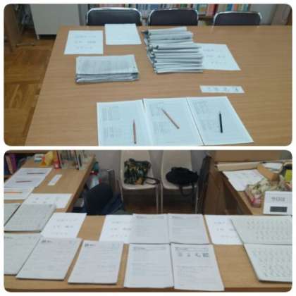 中間テストに向けての学習プリントを用意していただき、子どもたちは、学年別のに並べられたプリントをとっていっていました。