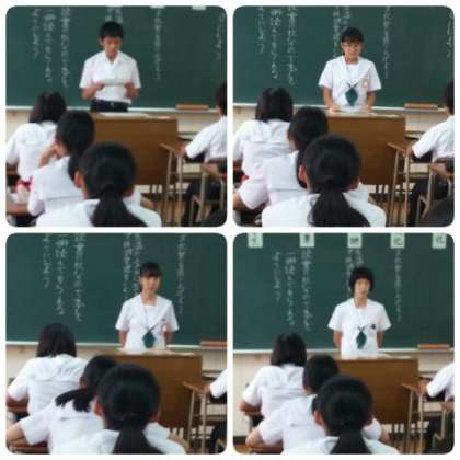 始めに、各専門委員会、学年委員会からの報告があり、次に生徒会長の中森さんから、文化祭について、小中交流会について、後期生徒会活動方針について提案され、決定しました。