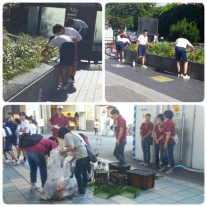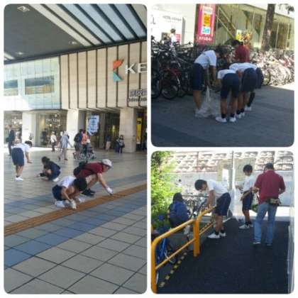 へばり付いたガムの除去、植え込みの中のゴミ拾いなど30分ほどの清掃で多くのゴミを集めました。