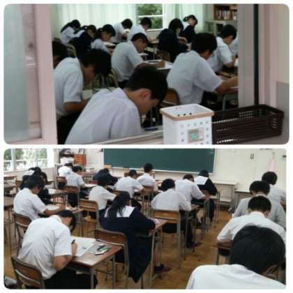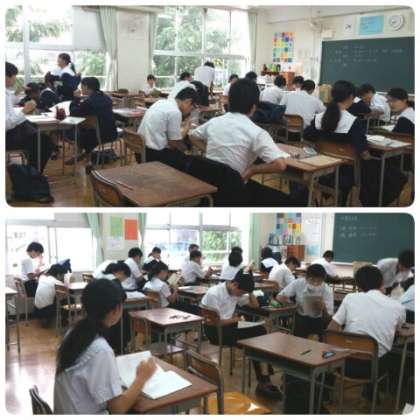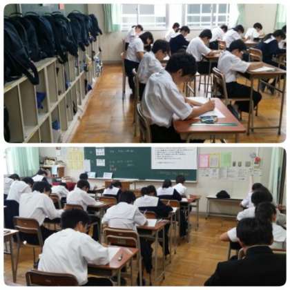 8時45分、1時間目・理科のテストが始まりました。どの学年も、テスト問題に真剣に取り組んでいます。
