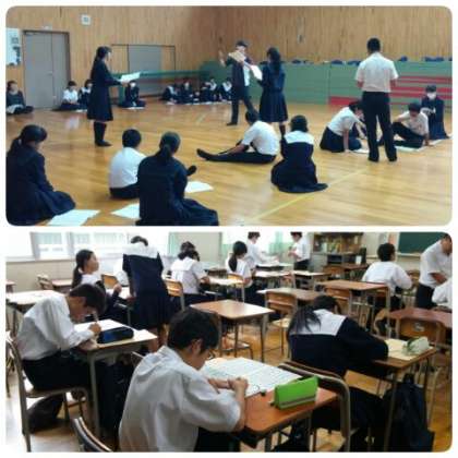 2年生は、武道場で劇の練習、教室では大道具や小道具の説明も行われていました。