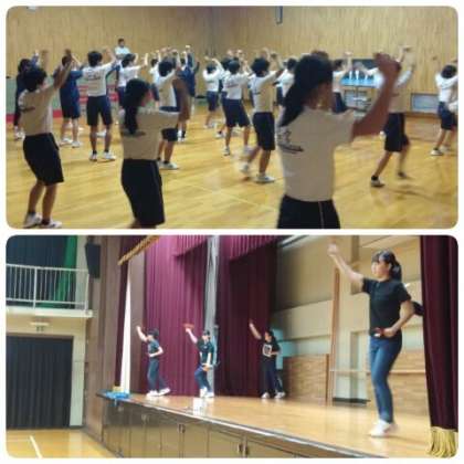 よさこいチームと書道パフォーマンスチームは、体育館、武道場で踊りの練習に取り組んでいました。各段階ごとのテストに合格しながら、徐々に仕上がってきています。書道パフォーマンスチームは、鳴子を持っての練習にも取り組み始めています。