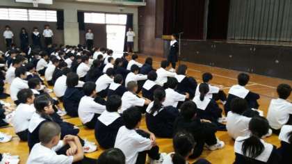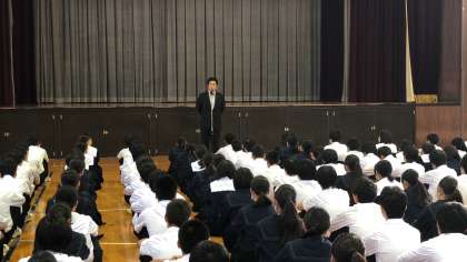 今日も、生徒会執行部役員の司会・進行で全校集会が始まり、学校長から次のような話がありました。