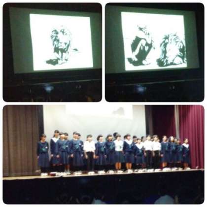 1年生は朗読劇「ヤクーバとライオン」に取り組みました。