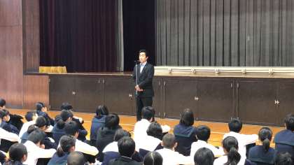 生徒会執行部役員の司会・進行で全校集会が始まり、学校長から次のような話がありました。