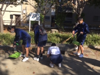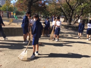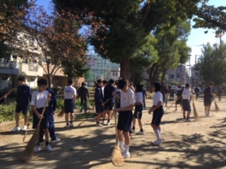 晴天の下のクリーン活動にたくさんの生徒たちが参加してくれました。学校近くの公園では落ち葉を中心に清掃しました。缶や瓶は少なめでした。落ち葉の中にどんぐりがありました。