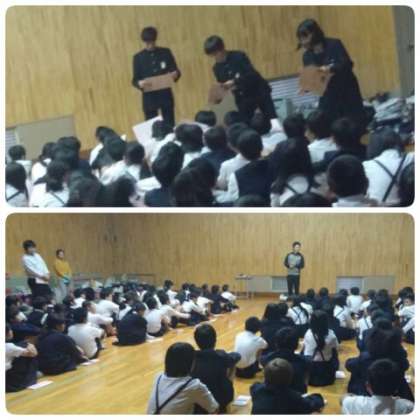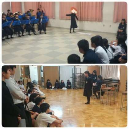 吹奏楽部ではミニコンサートを聴いてもらい、演劇部ではショート劇を観てもらいました。