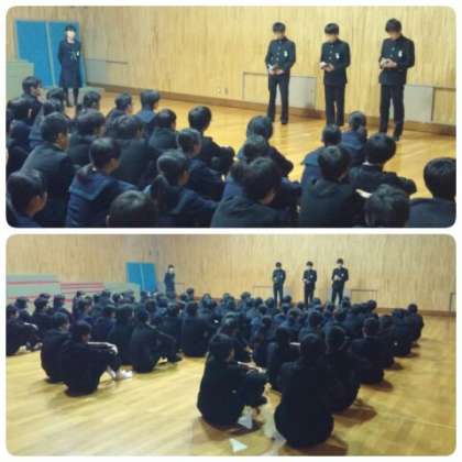 11月9日(金)、3年生は朝の学年集会を行いました。