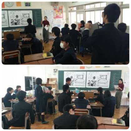 11月9日(金)4時間目は、2年1組で英語科の研究授業に取り組みました。