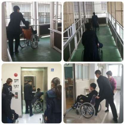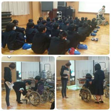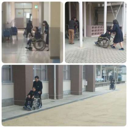 車いす体験を通して、段差のあるところでの操作の難しさ、通路におかれたちょっとした障害物がいかに邪魔な物か、エレベーターがなければ校舎移動ができない不便さなど、実体験をとおして子どもたちは学んでくれたと思います。