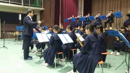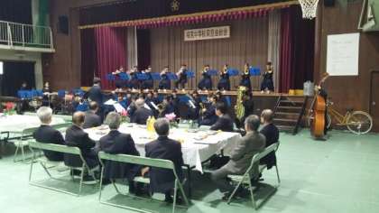 総会終了後、本校吹奏楽部が演奏を披露し、本校の元校長先生方をはじめ来賓の方々や本校卒業生の皆さんに4曲を聴いていただきました。