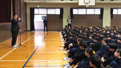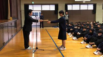 表彰状の授与のあと、どの部活動の生徒も「ありがとうございました」と一礼して自分の場所に戻っていってくれました。前回の全校集会で、「ありがとう」や「おかげさまで」という感謝の言葉を言っている人には、不思議と感謝の言葉を発するようなことが身の回りにおきます、と話をしました。