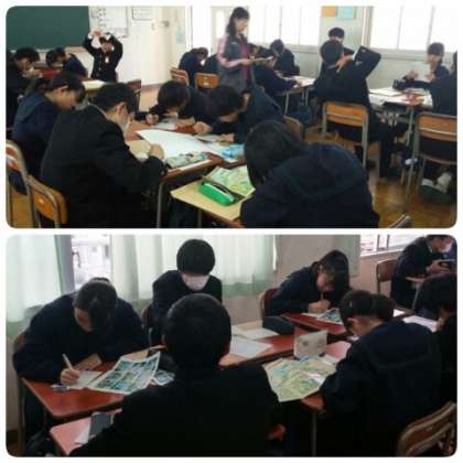 12月5日(水)5時間目、2年生は11月30日に実施したアクションプランの取組のまとめとして、班ポスターの作成に取り掛かりました。