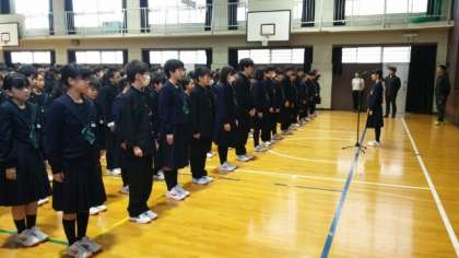 12月10日(月)、体育館において全校集会を行いました。