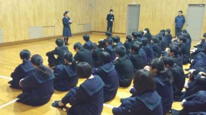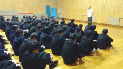 最後に、学年主任・増田先生から、通勤電車の中のエピソードや校長面接で気付いたことを交えながら、マナーや気配りの大切さ、正しい判断力などについて話がありました。
