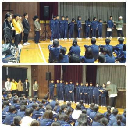 インストラクターの皆さんの審査の結果、1年優秀賞は1組「Rhythm Nation」と3組「Let's おどるポンポコリン」、最優秀賞には3組「たけの子」が選ばれました。続いて、2年生の優秀賞は1組「パリピ」と3組「No limit」が選ばれ、それぞれのグループの代表者にインストラクターの皆さんから表彰状が授与されました。