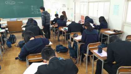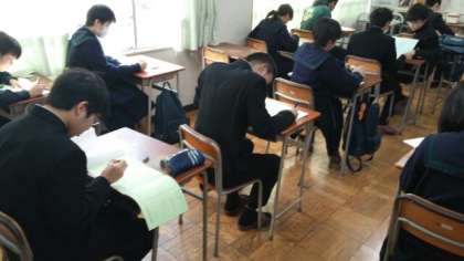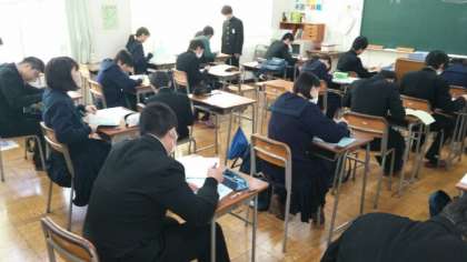 1月9日(水)3時間目、3年生は最後の実力テストを終え、各教室で私立高校の願書の下書きに取り組んでいました。