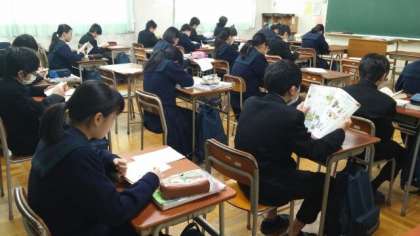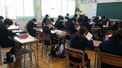 1月23日(水)、1年生は朝の学年集会の日ですが、インフルエンザの感染拡大防止のため、8時20分から各教室で朝学習・朝読書に取り組みました。各自が思い思いの学習プリントや本を出して静かに取り組んでいました。