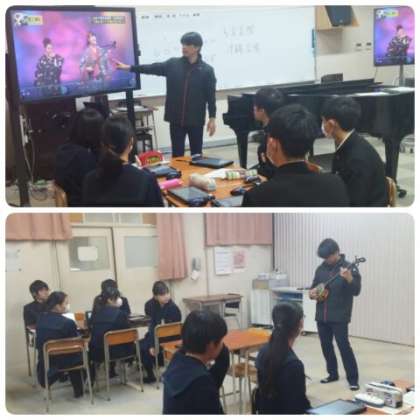 5時間目の2組、6時間目の1組は、沖縄の音楽についての学習です。