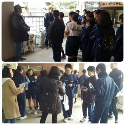 清掃用具は子どもたちが学校まで持ち帰ってくれました。最後に体育館前に集合し、PTA の方からスポーツドリンクが配られました。