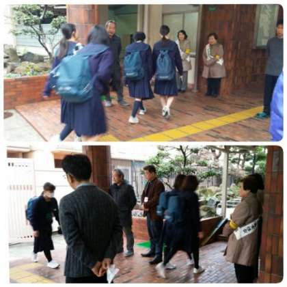 2月4日(月)午前8時から、更生保護女性会、本校学校元気アップの皆さんが、生徒会役員、先生方と一緒に正門で「あいさつ運動」に取り組んでいただきました。インフルエンザも徐々に治まり、子どもたちも元気な挨拶を返してくれ、気持ちよく1日がスタートします。