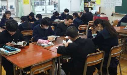 2月6日(水)、1年生は各教室で朝読書に取り組んでいました。