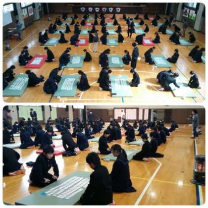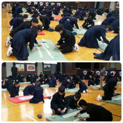 2月6日(水)4・5時間目、1年生は3時間目終了後に給食を摂り、12時半から体育館において百人一首大会を実施しました。