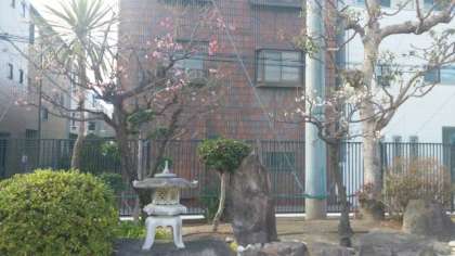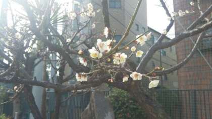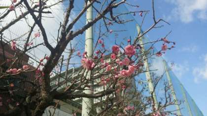 2月12日(火)、運動場南西側にある庭園の紅白の梅がきれいな花を咲かせています。まだまだ寒い日が続きますが、春の兆しを感じさせてくれます。