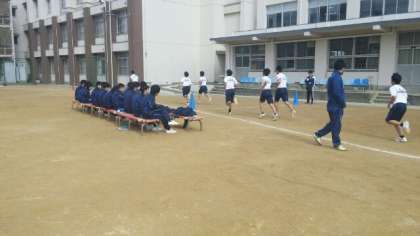 5時間目、木下先生は2年1・3組の体育の授業の補助に入ってもらいました。寒い中ですが、子どもたちは元気に10分間走にチャレンジしていました。