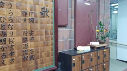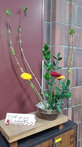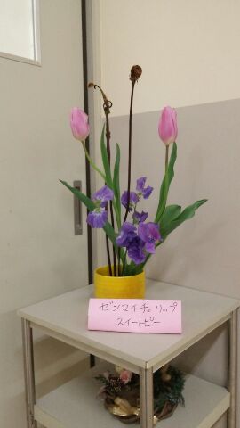 茶華道部の子どもたちが「いけばな」の作品づくりに取り組み、ウツギ、ガーベラ、ルスカスグリーンを使った作品を玄関に飾ってくれました。また、校長室前には、チューリップ、スイートピー、ゼンマイを使った作品を飾ってくれました。