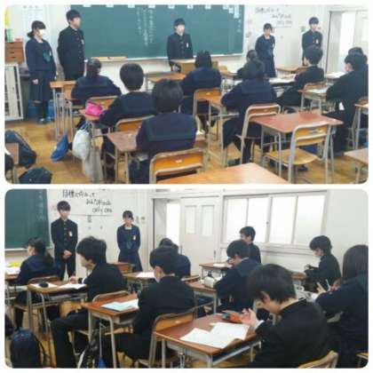 生徒議会終了後、執行部役員、1・2年学級委員長とで卒業生を送る会の取組について打ち合わせを行いました。
