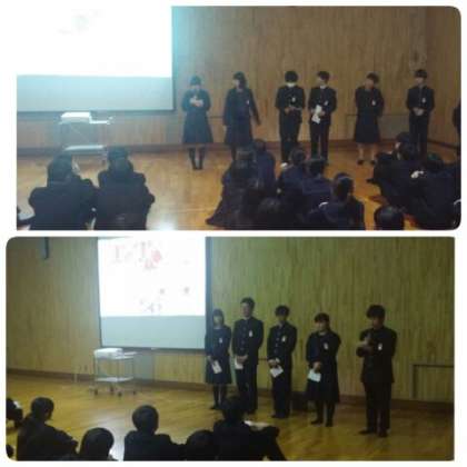 修学旅行委員会のメンバーが司会進行役を務め、発表後は質問や感想を聞き出すなど工夫した発表会となりました。