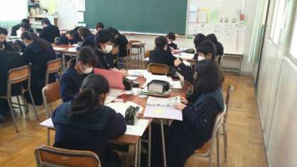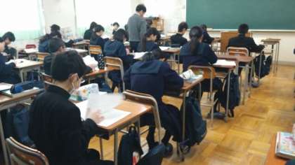 2月26日(火)、1・2年生は、明日から始まる学年末テストに向け、8時20分から各教室で朝学習に取り組んでいました。各自が思い思いの学習プリントや教科書等を出して、自主的にテスト勉強に取り組んでいました。
